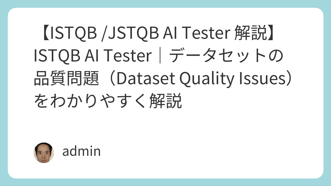 【ISTQB /JSTQB AI Tester 解説】ISTQB AI Tester|データセットの品質問題(Dataset Quality Issues)をわかりやすく解説
