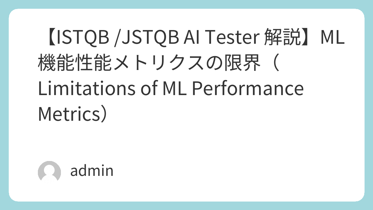 ISTQB AI Tester認定試験では、ML(機械学習)モデルの機能性能メトリクス(ML Functional Performance Metrics)について、その有効性だけでなく「限界(Limitations)」を理解しているかも問われます。