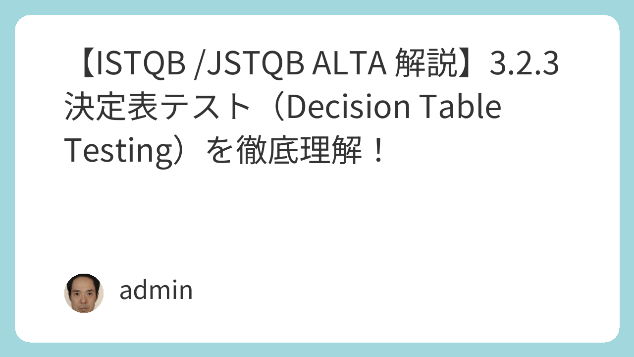 ISTQB Advanced Test Analyst シラバス第3章「仕様に基づくテスト技法(Specification-Based Techniques)」の中で、今回は 「決定表テスト(Decision Table Testing)」 について解説します。