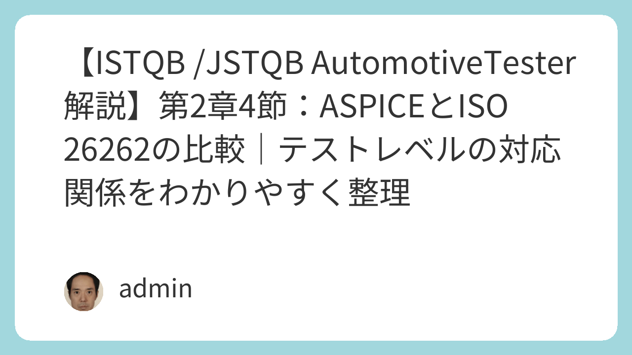 ISTQB Foundation Level(CTFL)で学んだテストレベルと、ISO 26262/ASPICEにおけるテスト階層の関係を整理します。