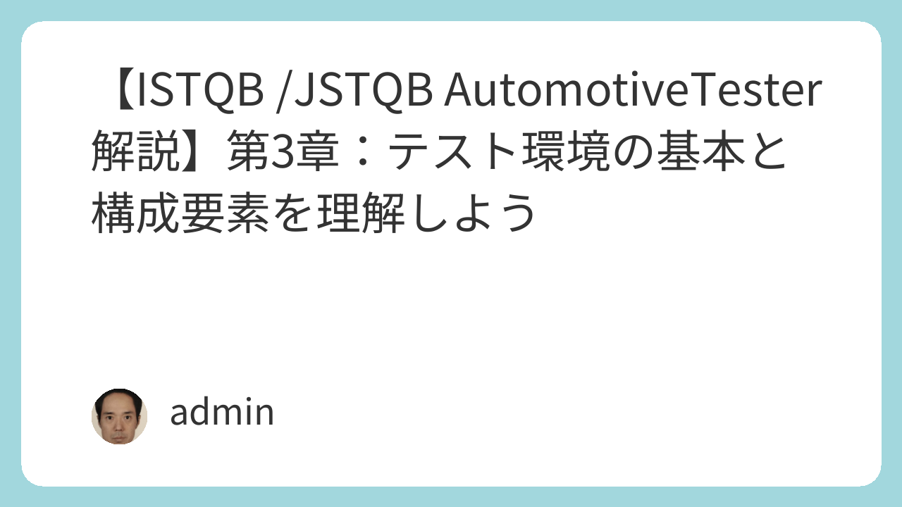 【ISTQB /JSTQB AutomotiveTester 解説】第3章:テスト環境の基本と構成要素を理解しよう