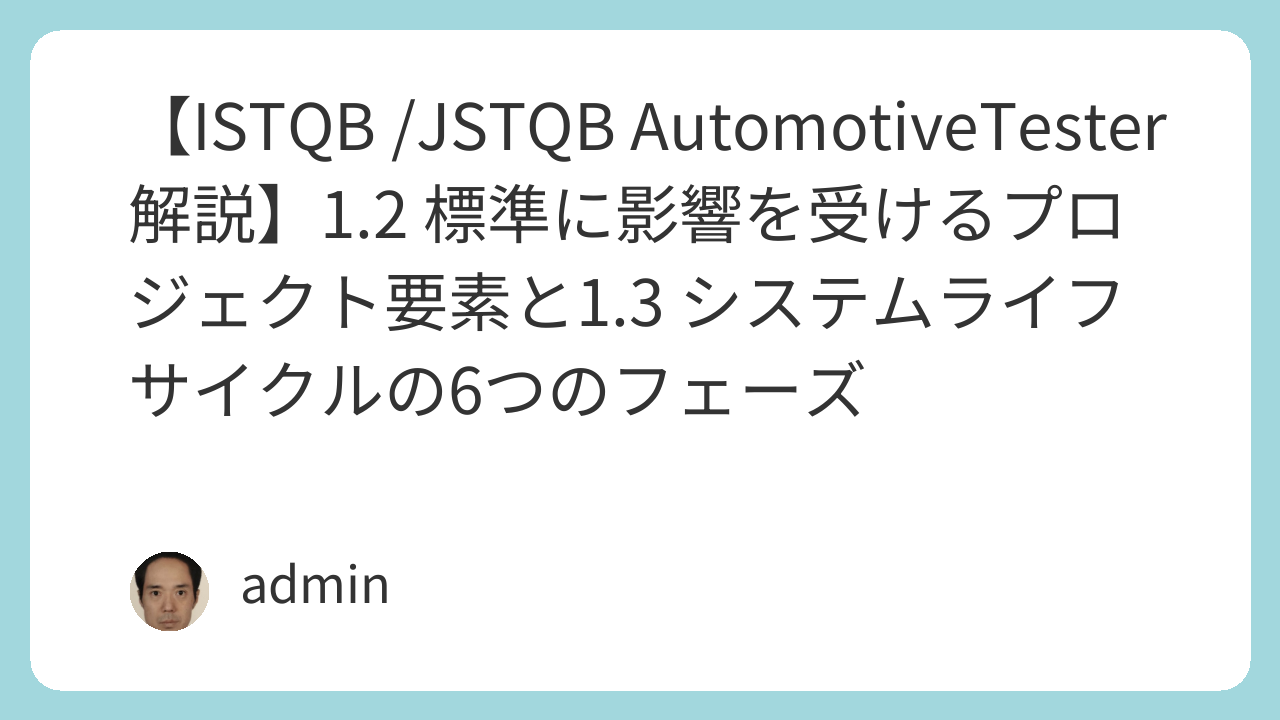 ISTQB Automotive Software Tester シラバスの第1章では、自動車ソフトウェア開発における 標準の影響 と システムライフサイクルの構造 を理解することが重要なテーマとして扱われます。