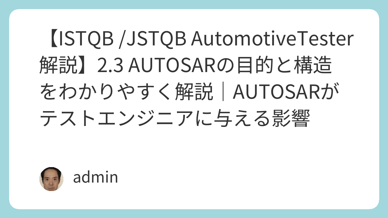 AUTOSARはテスターの仕事にも大きな影響を与えます。