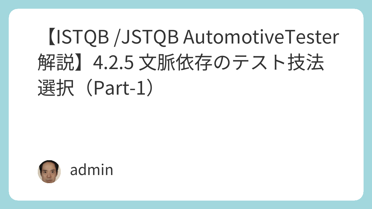 【ISTQB /JSTQB AutomotiveTester 解説】4.2.5 文脈依存のテスト技法選択(Part-1)